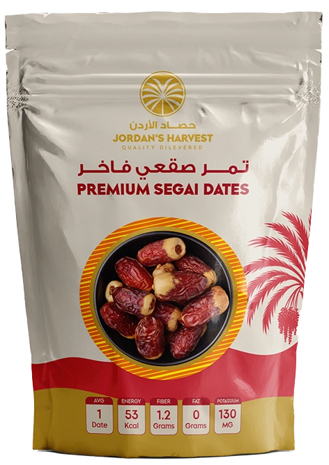 Segai dates, celebrated for their unique dual colors and light sweetness, are cultivated in the fertile lands of Al-Kharj in Saudi Arabia. With their cylindrical shape and smooth texture, a natural treasure from farm to table.